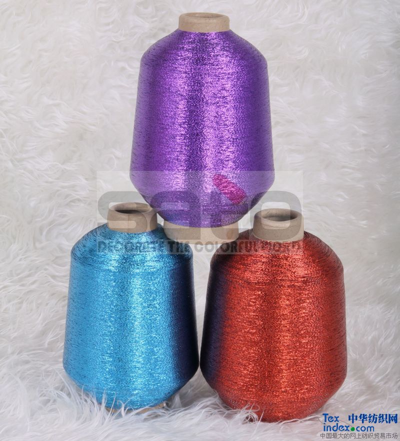 MX型產品是由分切好的鍍鋁金銀絲片與兩根滌綸或錦綸雙向合抱而成。
