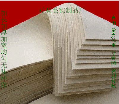 工業(yè)專用毛氈羊毛氈廠家規(guī)格圖片批發(fā)價格祥順毛氈制品廠給力 工業(yè)毛氈富有彈性,可作為防震、密封、襯墊和彈性鋼絲針布底氈的材料。粘合性能好,不易松散,可沖切制成各種形狀的零件。保溫性能較好,可作為隔熱保溫材料。組織緊密,孔隙小,可作為良好的過濾材料.耐磨性較好,可作為拋磨光的材料。富有彈性,所以經(jīng)縮絨原理粘合而成??s絨粘合后由密度的大小,規(guī)格的不同可分開使用。 毛氈采用天然羊毛制成,利用羊毛的縮絨特性經(jīng)機(jī)加工粘合而成(非經(jīng)緯交織)?! ? 主要特征如下:富有彈性,可作為防震、密封、襯墊和彈性鋼絲針布底氈的材料。粘合性能好,不易松散,可沖切制成各種形狀的零件。保溫性能較好,可作為隔熱保溫材料。組織緊密,孔隙小,可作為良好的過濾材料。耐磨性較好,可作為拋磨光的材料。 世界毛氈看中國,中國毛氈看祥順