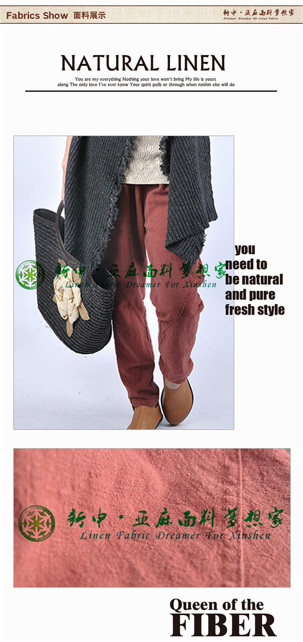 優(yōu)質(zhì)純亞麻女士百搭款長褲、休閑9分褲布料