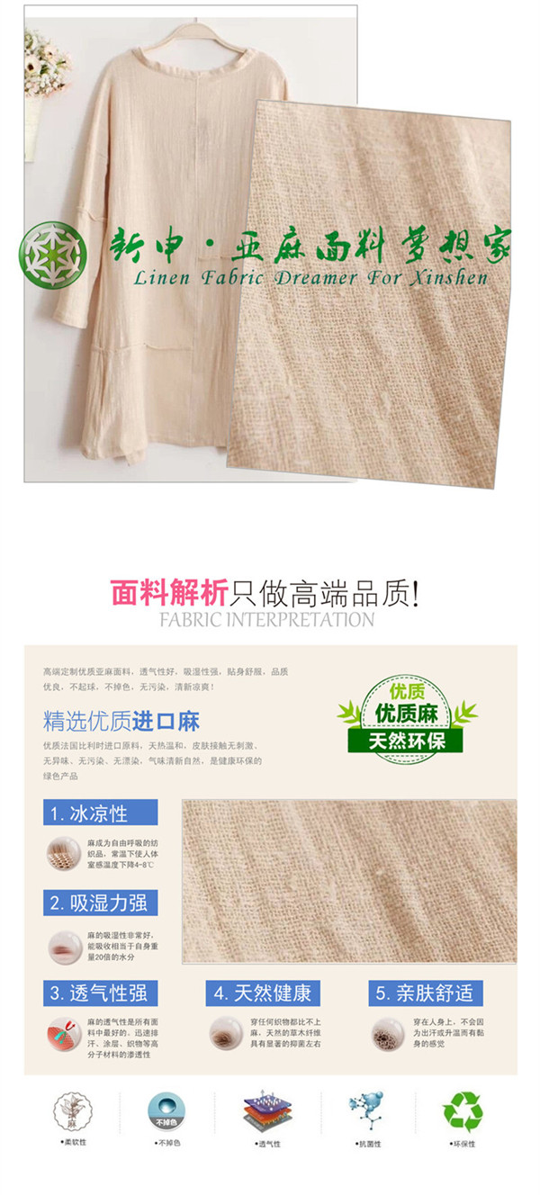 關鍵字:亞麻面料,居家舒適,寬松休閑,淑女氣質(zhì),自然親膚
