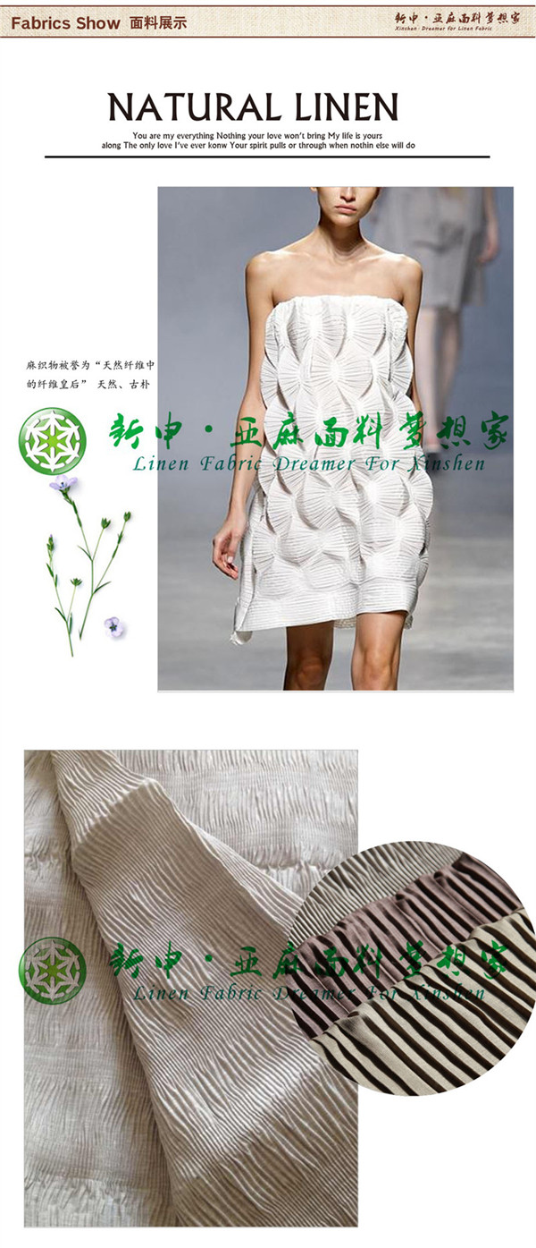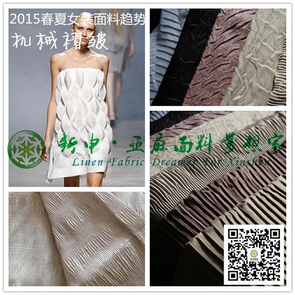 純亞麻壓皺女裝面料 面料趨勢 機(jī)械褶皺