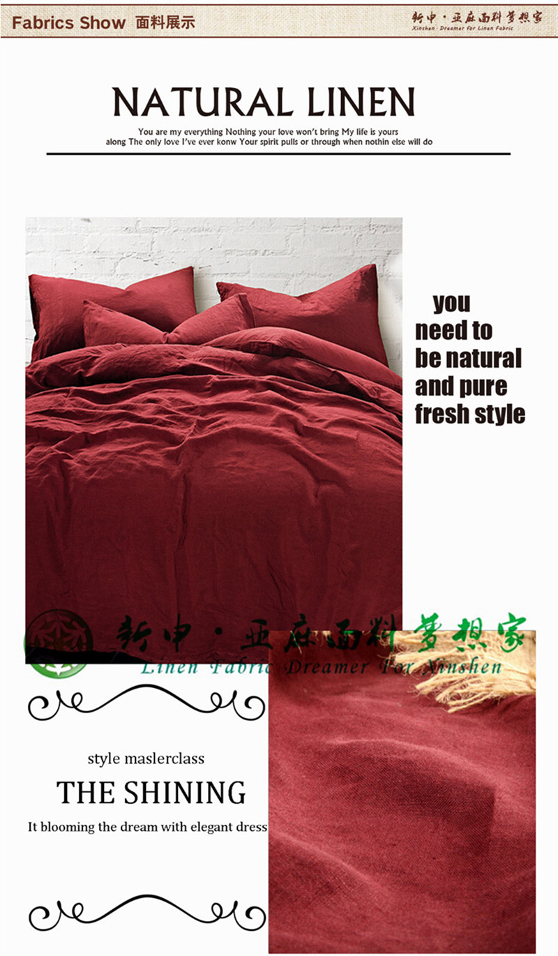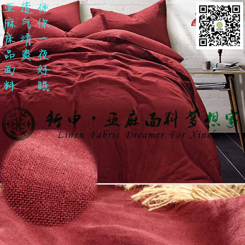 高檔優(yōu)質(zhì)純亞麻酒紅色床品四件套布藝面料
