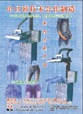 大批量的牛仔水洗設備在國內(nèi)大型服裝有限公司正常使用,歡迎來廠考察看樣訂貨 (如需要請聯(lián)系本公司,可以郵寄牛仔壓花壓皺整套工藝操作過程的光碟,以做參考)