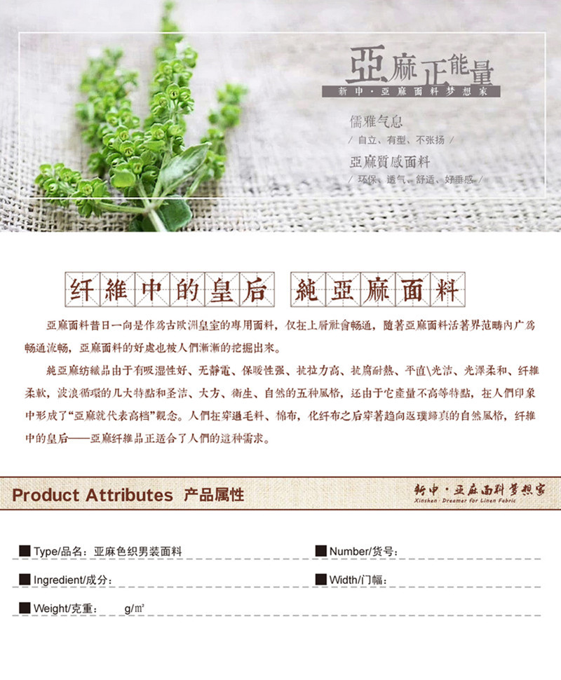 所屬分類(lèi) 面料,麻面料