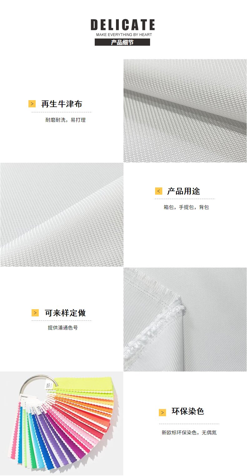 關(guān)鍵字:再生面料,長絲牛津布面料,箱包面料,手提包面料