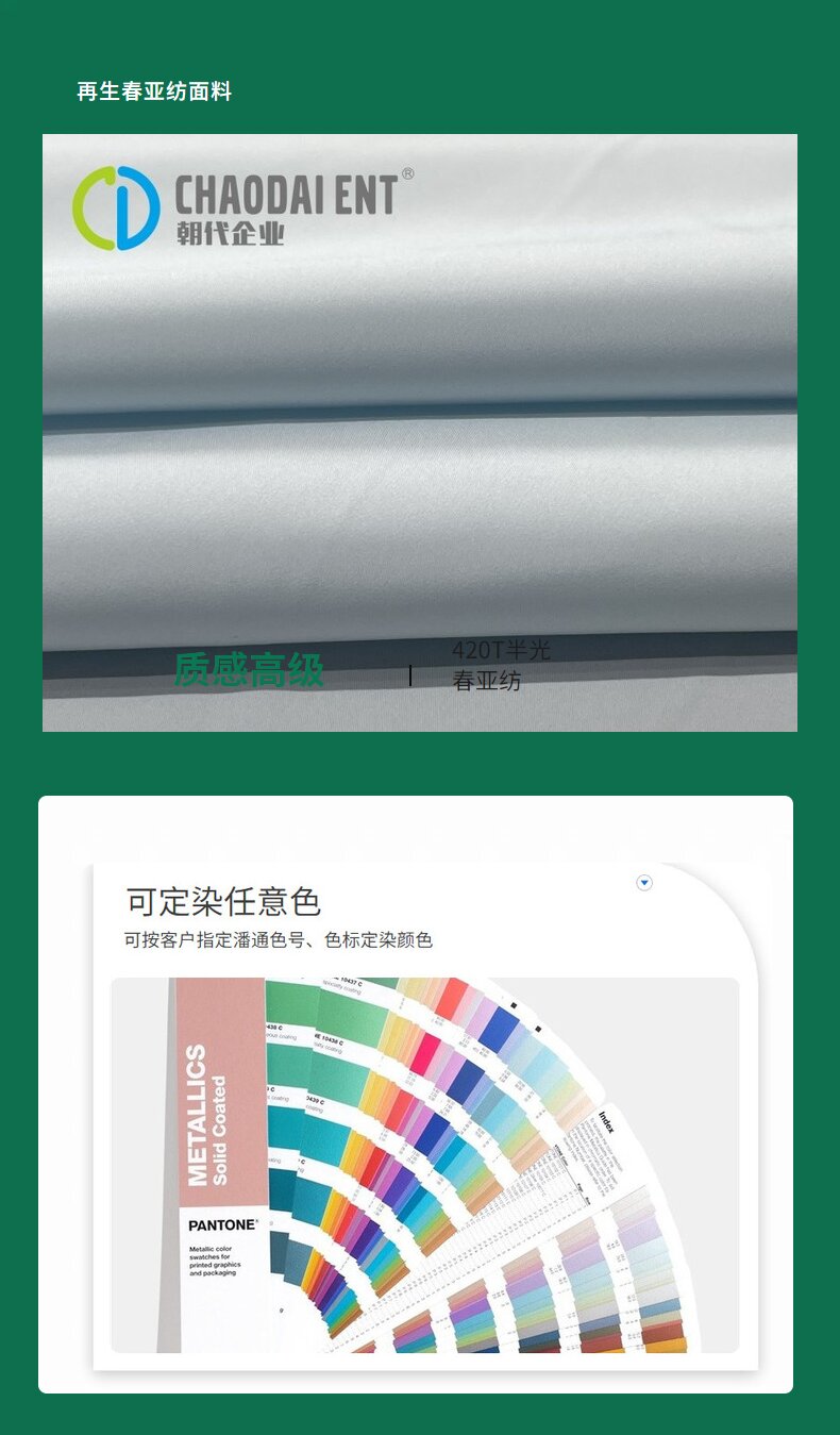 關(guān)鍵字:再生面料,半光春亞紡面料,羽絨服面料,包袋面料