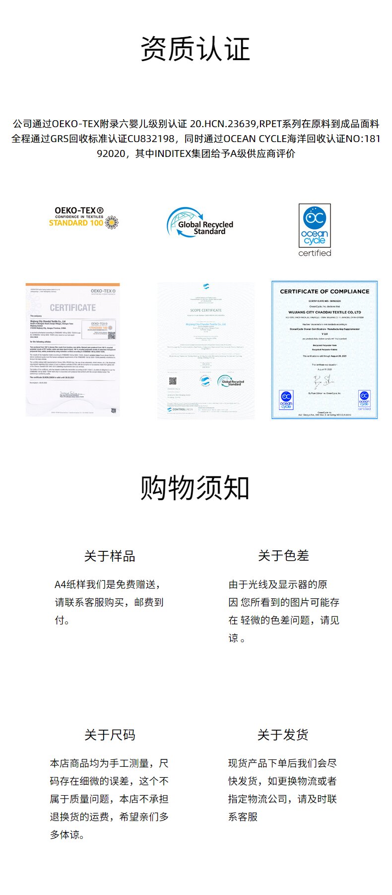 成份比例 100%OCEANRPET