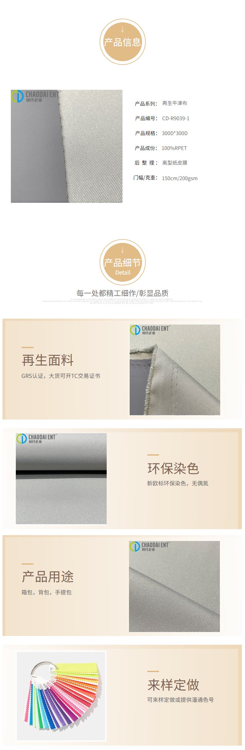 關(guān)鍵字:再生牛津布面料,箱包面料,手提包面料,GRS認(rèn)證面料