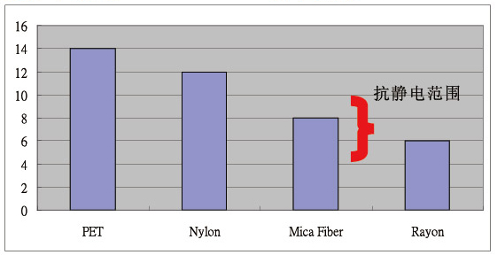 冰涼纖維與其他紗種比較,云母紗優(yōu)異的抗靜電效果使其與PET或者NYLON產(chǎn)生區(qū)別。