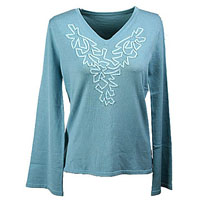 精工織造的雞心領(lǐng)繡花套衫