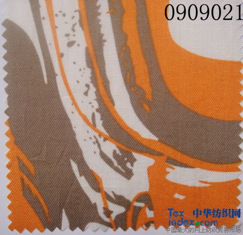 布號(hào):0909021 類別:人絲棉印花 紗支密度:75D*60S 114*86 組織:斜紋 成份:V/C 幅寬:145cm